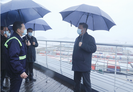 习近平总书记29日在浙江考察调研。当天下午,他先后来到宁波舟山港穿山港区码头、北仑大碶高端汽配模具园区,了解港口和园区企业复工复产情况。