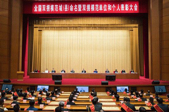 大会宣读了关于命名411个全国双拥模范城(县),关于表彰全国爱国拥军模范单位和拥政爱民模范单位,关于表彰全国爱国拥军模范和拥政爱民模范的决定。大会向受到命名表彰的全国双拥模范城(县)、双拥模范单位和个人代表颁奖。有关军地代表发言。