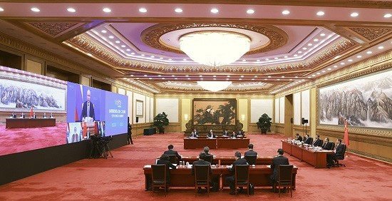 11月17日晚,金砖国家领导人第十二次会晤以视频方式举行。国家主席习近平在北京出席会晤并发表重要讲话。 新华社记者 丁林 摄