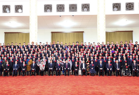 会前,习近平等领导同志会见了全国脱贫攻坚楷模荣誉称号获得者,全国脱贫攻坚先进个人、先进集体代表,全国脱贫攻坚楷模荣誉称号个人获得者和因公牺牲全国脱贫攻坚先进个人亲属代表等,并同大家合影留念。